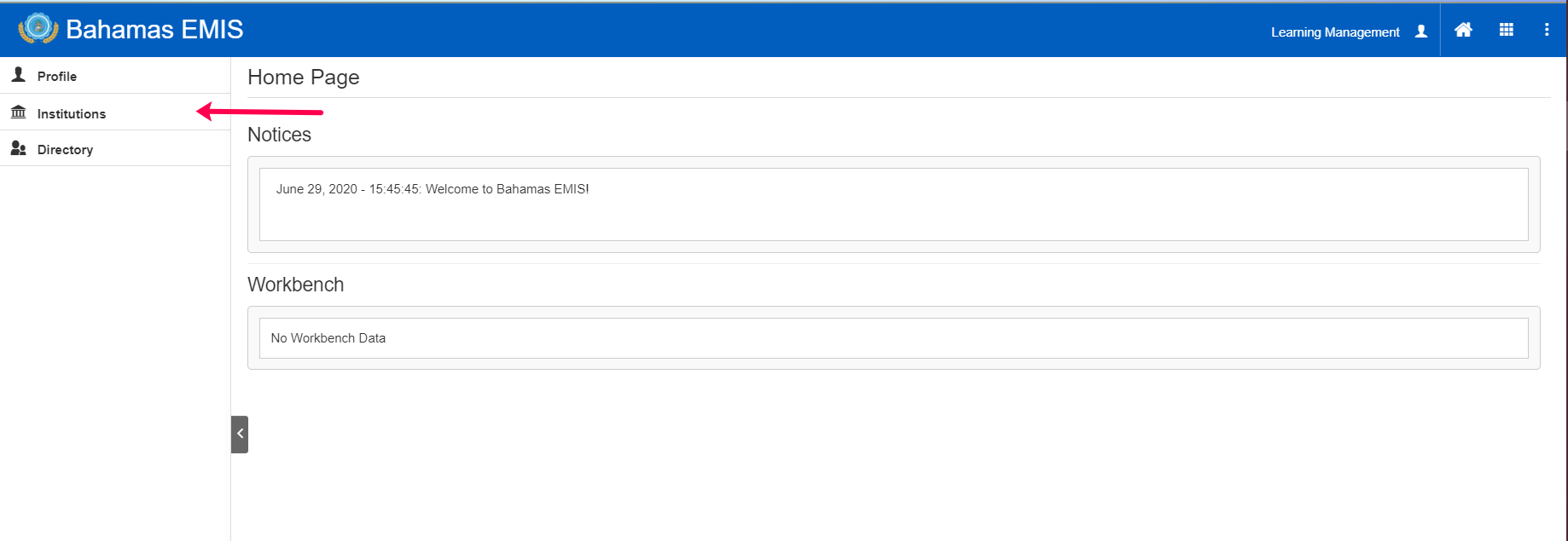 1. Go to Institutions