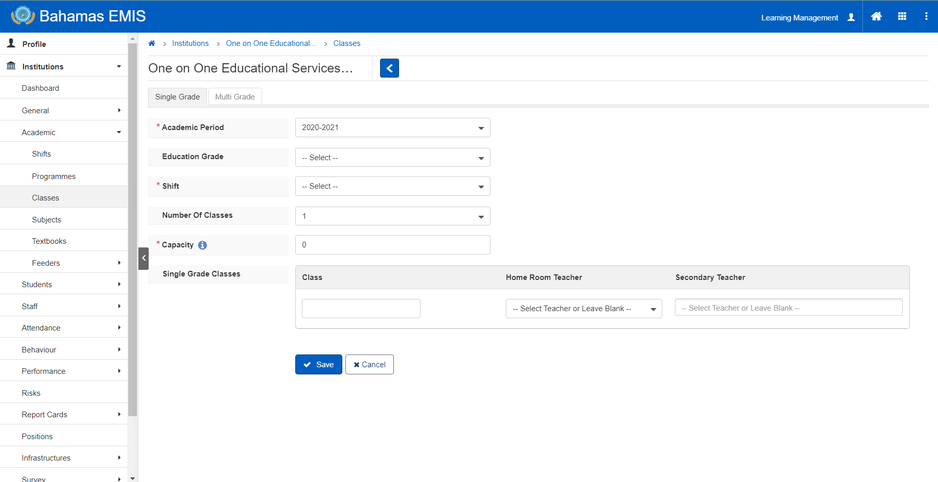 6. Enter the name of the Single Grade Classes (If different from the class already Auto-generated).